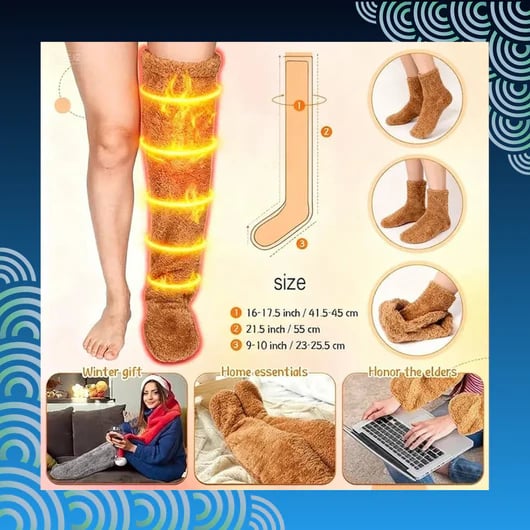 Ideal for chilly weather or relaxing at home, these socks help to keep you cozy and comfortable. Whether worn under boots for extra warmth or alone at home, they ensure your feet and legs stay protected from the cold.